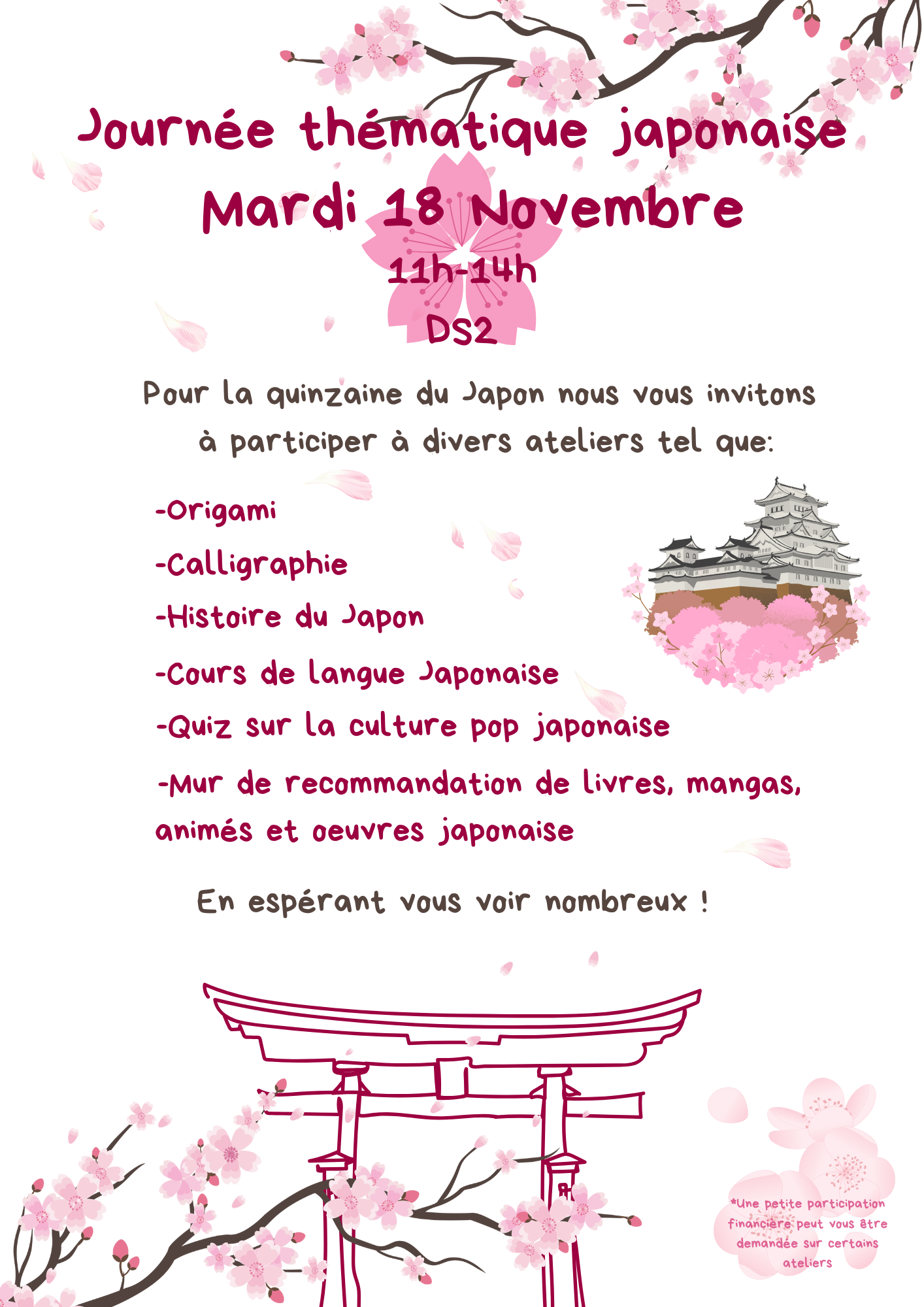 Passionnés du Japon et de sa culture ou juste curieux, venez aux ateliers de la quinzaine du Japon en Occitanie mardi 18 novembre de 12h à 14h en DS2.