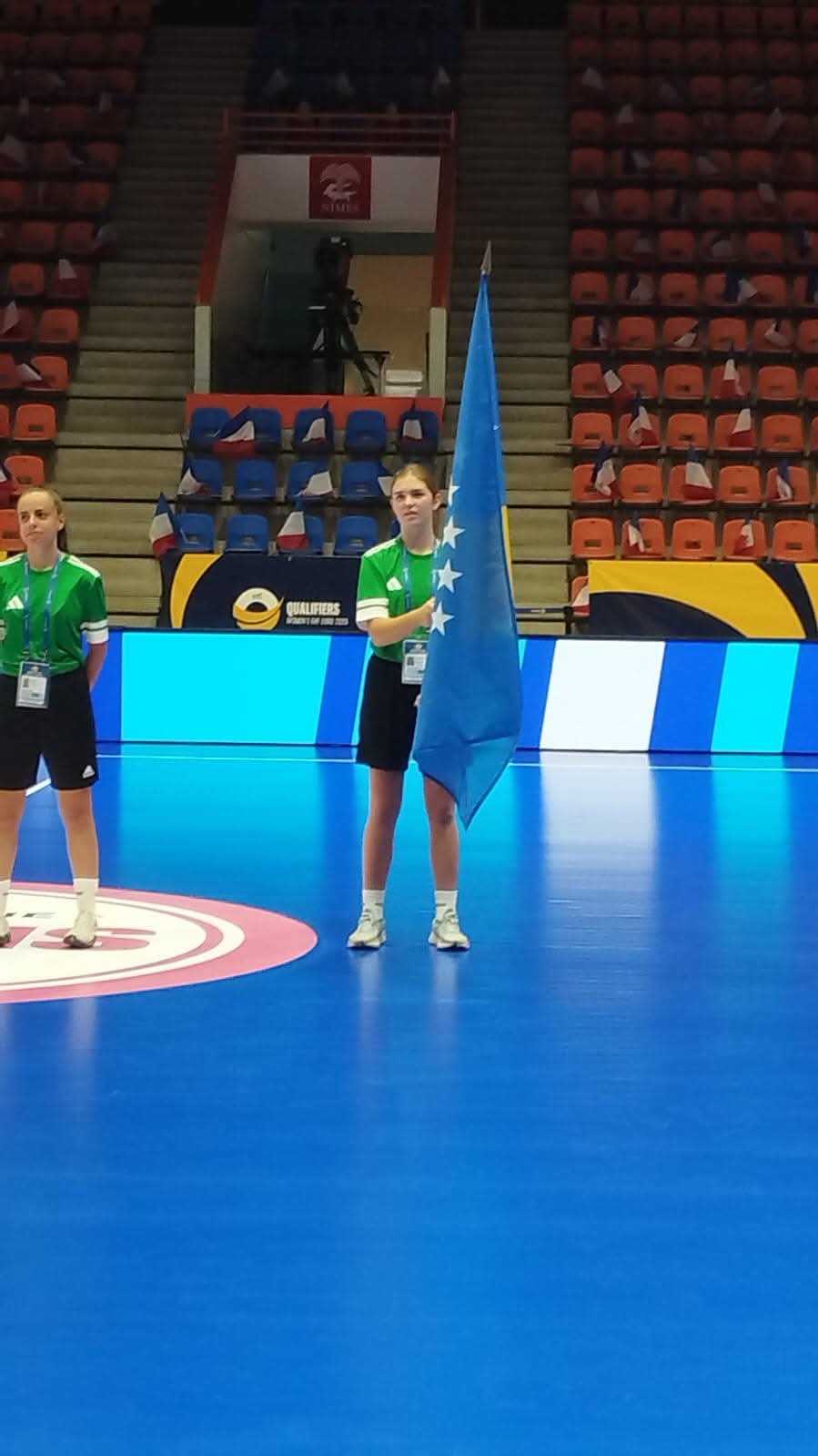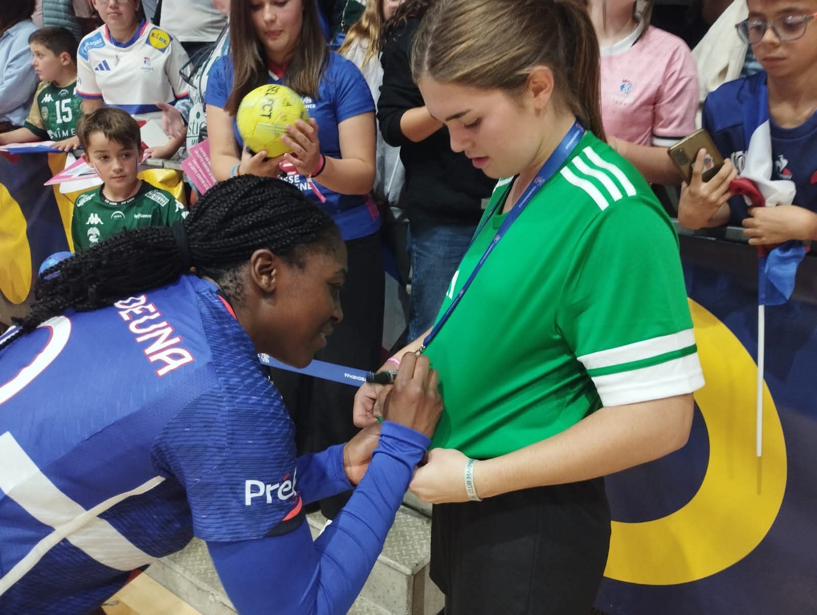 " Coup de projecteur sur Sarah Mercadier, élève du sport-études Handball du lycée Jules Fil, licenciée au FJEP Castelnaudary, qui a eu l'honneur d'être porte drapeau de l'équipe de France féminine de Handball qui jouait un match de qualification pour l'Euro 2026 contre le Kosovo. Bravo à elle !"