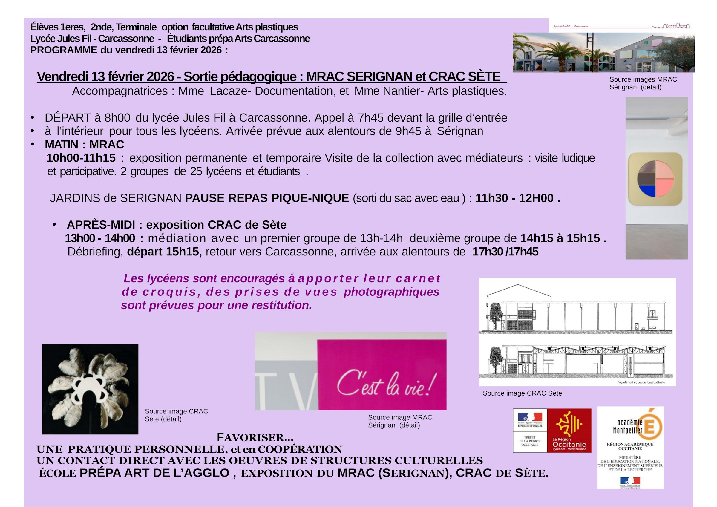 Art contemporain : vendredi 13 février 2026 - Sortie pédagogique au MRAC SERIGNAN et CRAC de SÈTE