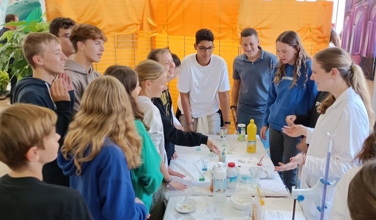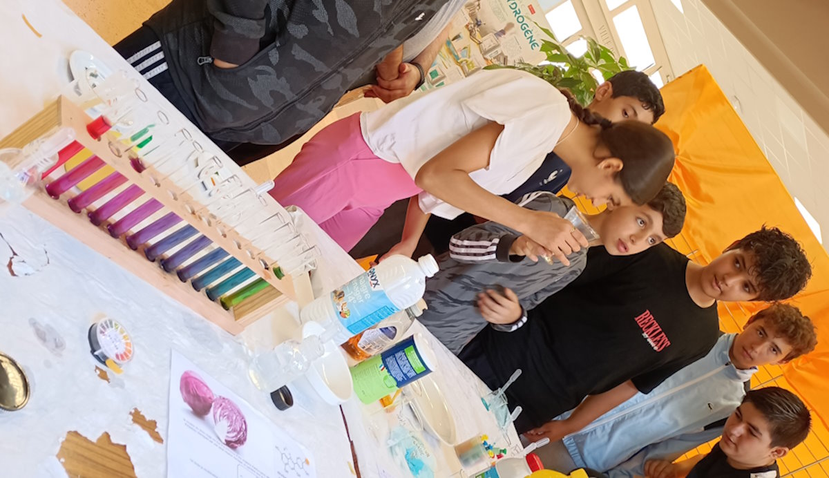 Chloé de son côté a pu fabriquer des lampes à laves chimiques en faisant participer les spectateurs avides d’utiliser des pipettes pour créer des billes colorées et voir les colorants fuser dans le lait. Enfin Jade a pu expliquer avec son dégradé de pH du plus acide entre 1 et 7 au plus basique de 7 à 14 comment les anthocyanes, molécules du chou rouge ont pu changer de manière aussi surprenante de couleur !