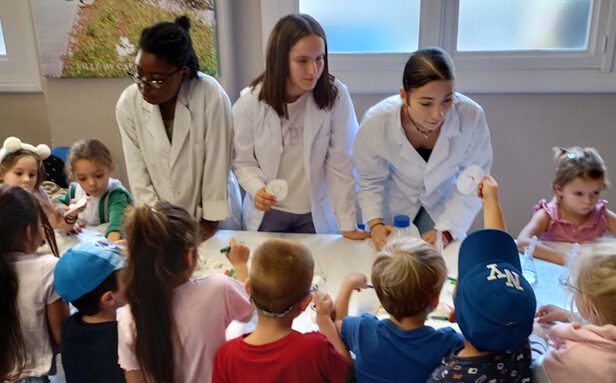 L’atelier Chimie et couleurs a connu un succès phénoménal lors des deux jours de la fête de la science à Carcassonne. Un premier atelier pour tous les âges, car les parents aussi s’y sont essayés, sur le principe de la chromatographie a permis aux enfants de repartir avec de jolies fleurs colorées grâce à Kristen, Sarah Kamélia et Anthéa !