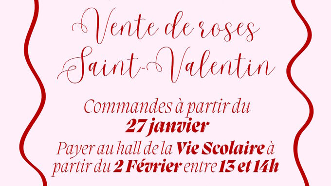 Par admin jules-fil2, publié le jeudi 29 janvier 2026 17:03 - Mis à jour le jeudi 29 janvier 2026 17:10Le Conseil de la Vie Lycéenne (CVL) est ravi de vous annoncer le retour de sa traditionnelle opération "Roses de la Saint-Valentin". -