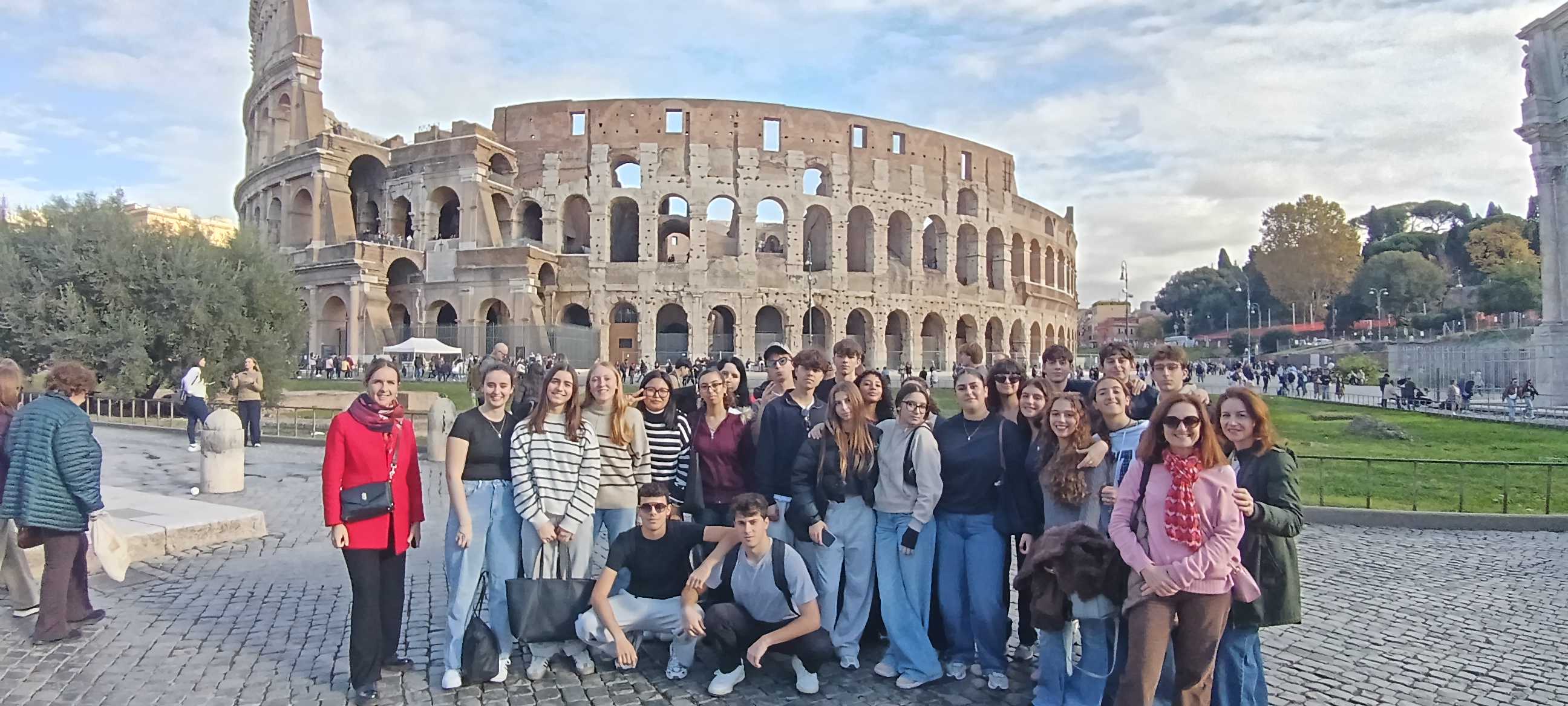 Après avoir accueilli, il y a un mois, leurs correspondants italiens italiens de Rome, les 12 élèves de 1ere, Adrien Baillaud, Jeanne Deroin, Mélissa Cotty, Céline Nguyen, Léa Atalay, Fatiha Ben Saad, Pellizzoni Simon, Eden Burel, Emma Ribeiro ,Juliana Brasseur, Jade Soldani, et Feryel Boushala, accompagnés de leurs professeurs Noémie Pellaers et Clément Pastorelli , se sont envolés Samedi 15 Novembre dernier pour les retrouver.